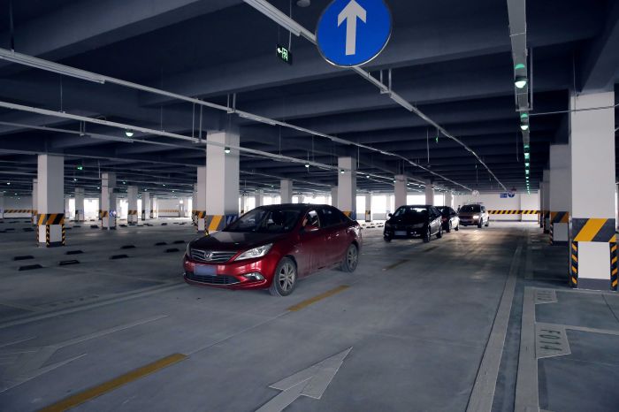 车辆驶入一层停车场,停有车辆的车位上方感应器显示为红色,如车位为空则显示绿色,驾驶员根据感应器显示的颜色,很容易找到空车位。车辆上下楼需沿停车楼南北两侧的坡道行驶,每往上一层,坡道口均设置有剩余车位实时显示牌。上下行坡道都采用了防滑设计,室内地面均铺有环氧地坪。停车楼的东侧和西侧分别建有步行楼梯,东侧还安装了两部电梯。更人性化的是,在停车楼一楼东侧,还专门设置了10个残疾人车位。