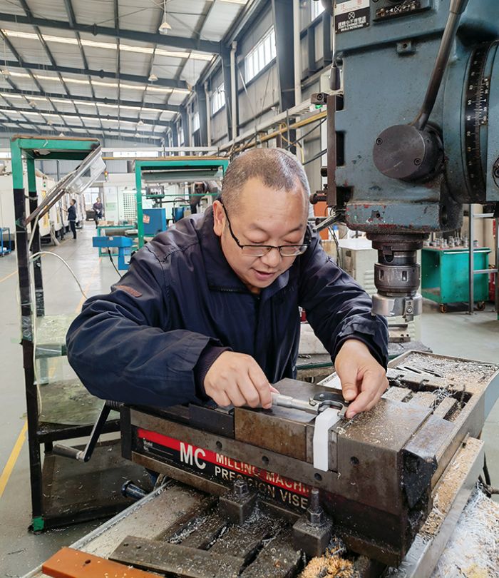 一周后,夏福彬就可以在CNC机台上加工简单的零件;两周过后,差不多可以单独操机。前期,为了不出差错、避免发生撞机,夏福彬每次操作都很谨慎。他先将程序编辑好,让机台空跑一圈,然后在主轴上装一支铅笔、在平台上放一张白纸,以笔代刀,确认铅笔运行轨迹正确,才正式开始加工作业。